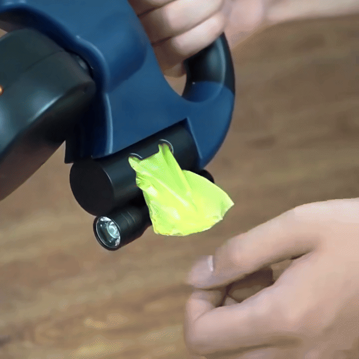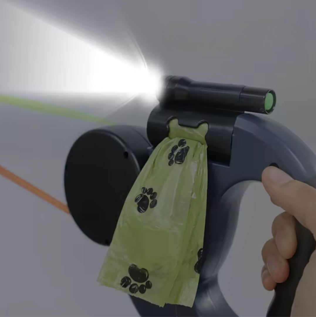 A powerful LED flashlight ensures visibility in the dark, keeping you and your dogs safe during evening or early morning walks.